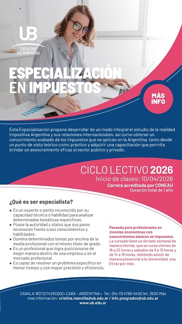 Especialidad en impuestos orientada a profesionales de ciencias económicas con conocimientos básicos en impuestos